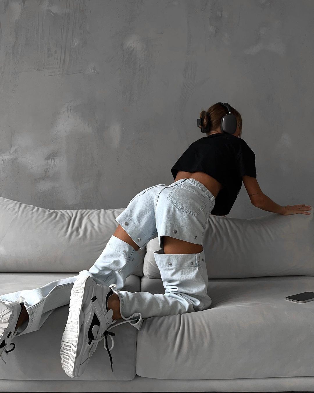 Introducing The "2in1" Washed Denim - the unique double use piece that offers both shorts and a half or fully buttoned denim jeans. With its edgy style, this versatile item is perfect for any occasion. Say goodbye to boring outfits and hello to effortless style.