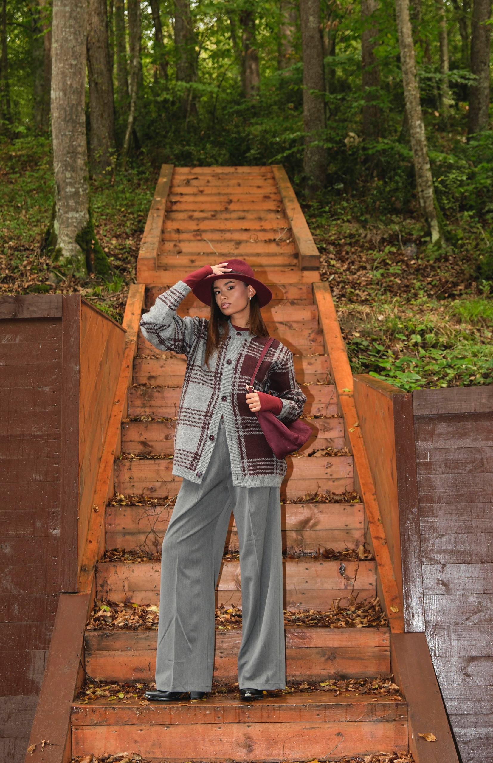 A stylish touch to wintery outfits by the asymmetric aspect created by the color difference.