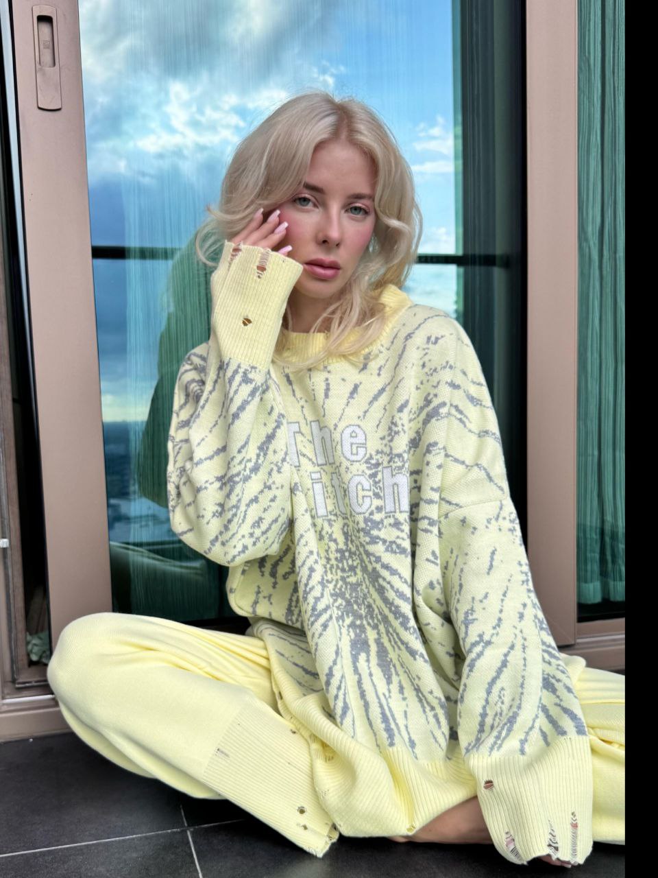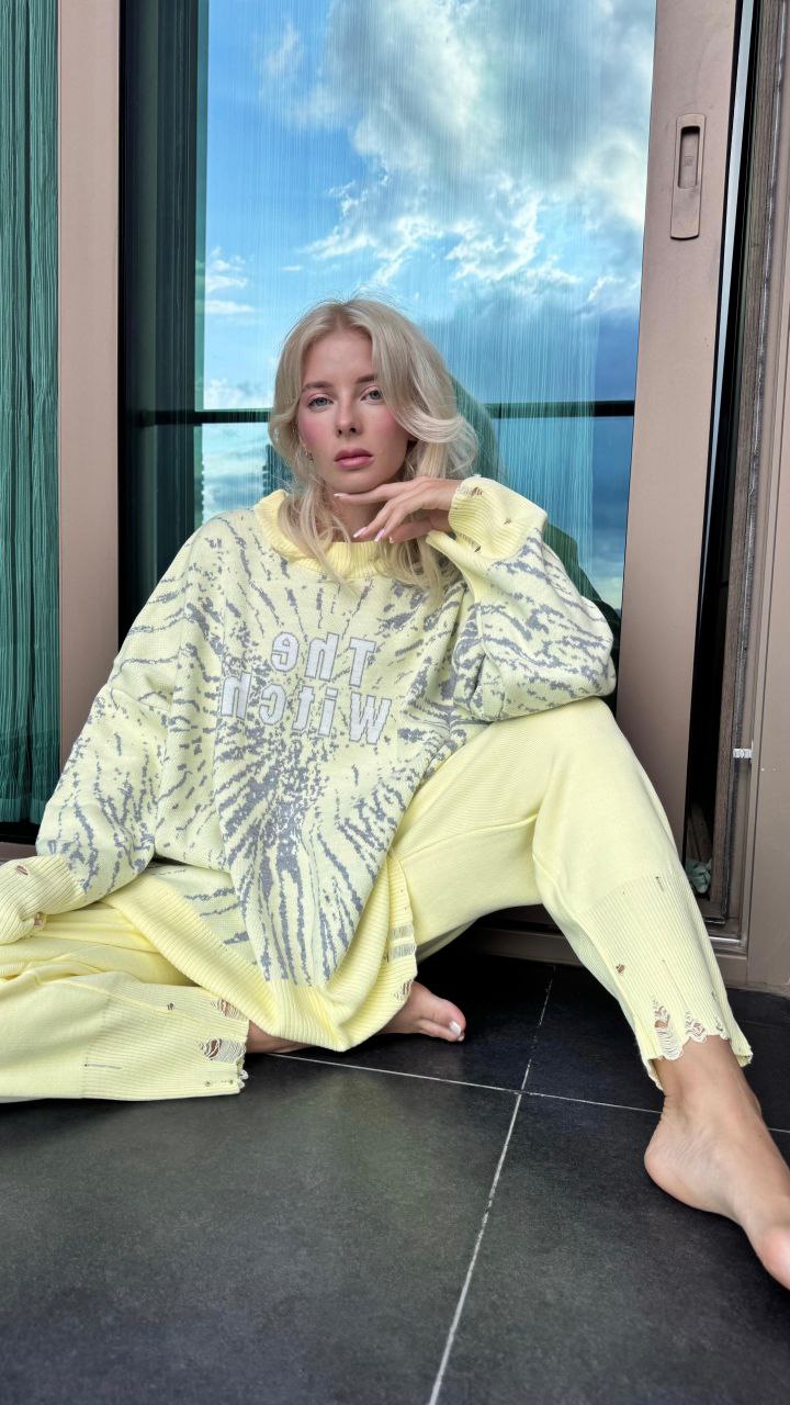 As you see in the photos, sweat is oversized, long length with wide sleeves are shown.